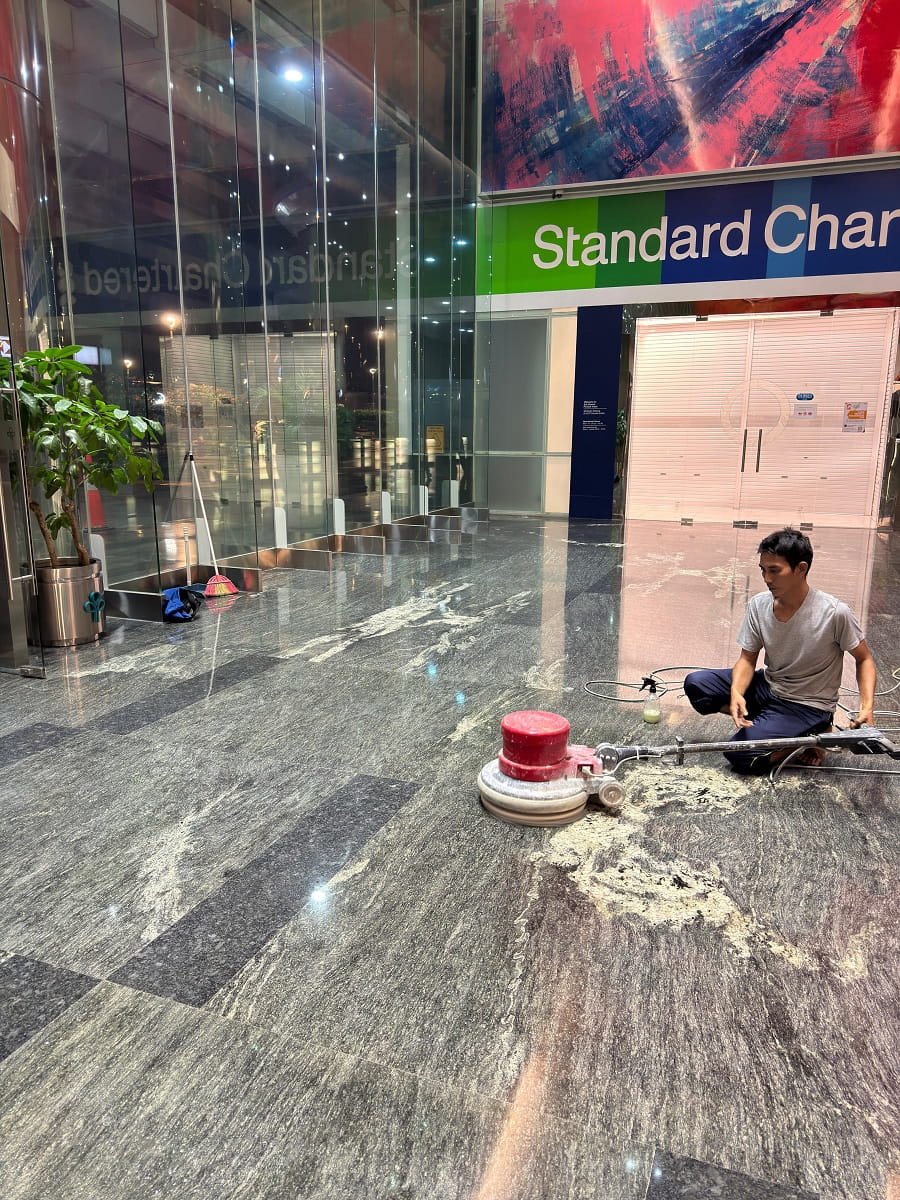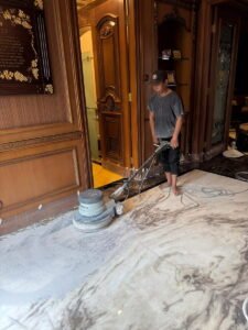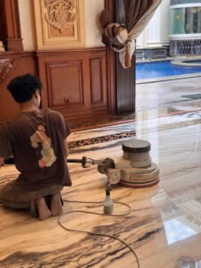 Jasa profesional yang berfokus untuk mengembalikan kilau dan keindahan alami Marmer yang sudah kusam ataupun rusak akibat penggunaan sehari-hari. Dengan melewati beberapa tahap, seperti pengupasan permukaan (Grinding), pemolesan, kristalisasi, dan coating agar Marmer kembali berkilau seperti baru.